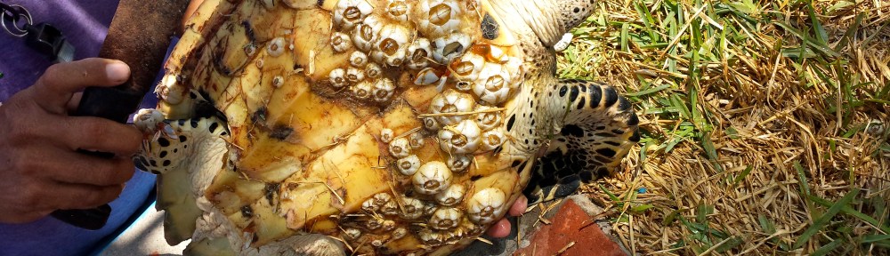 Mary cowers in terror, as several of us run over to tell the guy not to do this in front of everyone like this. You hate that endangered animals are eaten, but you wish at least they would do the butchering out back somewhere. But before you get to the guy he gently taps the machete against a growth on the underbelly of the turtle. It’s a barnacle. He knocks it off and then repeats it for a bunch of barnacles on this poor turtle.